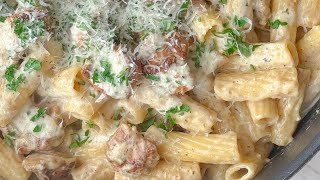 Experience the comforting embrace of a classic Italian-inspired dish with a twist. This Creamy Alfredo Chicken Pasta combines tender pieces of seasoned chicken with rigatoni, enveloped in a luscious Alfredo sauce. Perfect for a family dinner or a cozy night in.
