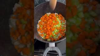 - Add the minced garlic, diced onion, celery, and carrots to the pot.