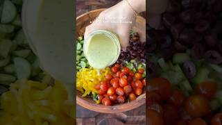 - Drizzle the creamy pesto dressing over the salad ingredients and toss gently until everything is evenly coated with the dressing.