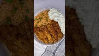 #crispychicken #redrice #cucumberyogurtsalad #homemade #delicious #familymeal #tasty #comfortfood #foodie