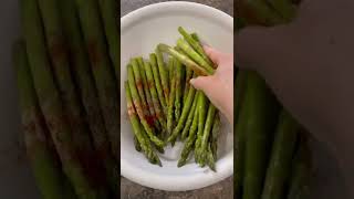 - Trim the ends of the asparagus and wash thoroughly.
