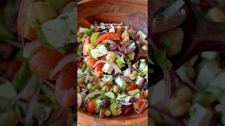 #mediterraneansalad #chickpeasalad #freshingredients #homemadedressing #healthyrecipes #quickmeals #saladlove #easyrecipes