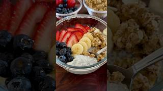 - Top with fresh slices of banana, strawberries, blueberries, and a sprinkle of granola.