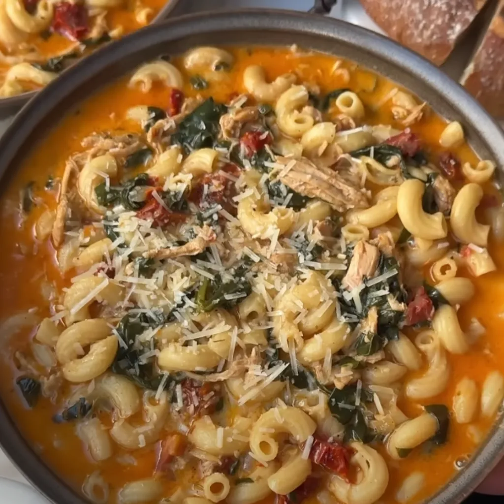 Indulge in a bowl of comfort with our Marry Me Chicken Noodle Soup, a delightful twist on the classic marry me chicken dish. This creamy and flavorful soup brings together the rich taste of sun-dried tomatoes, tender shredded chicken, and perfectly cooked pasta, creating a heartwarming meal that's perfect for any occasion. It's a truly irresistible dish that promises to win over the hearts of everyone at your table.