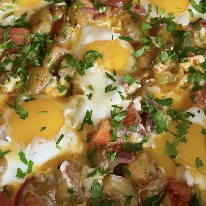 Eggplant Shakshuka is a comforting and hearty dish derived from Middle Eastern and North African cuisines, perfectly suited for any meal of the day. This rich, flavorful dish is cooked in a tomato-based sauce with tender eggplant and topped with beautifully poached eggs. Serve it with crispy bread for an unforgettable dipping experience.