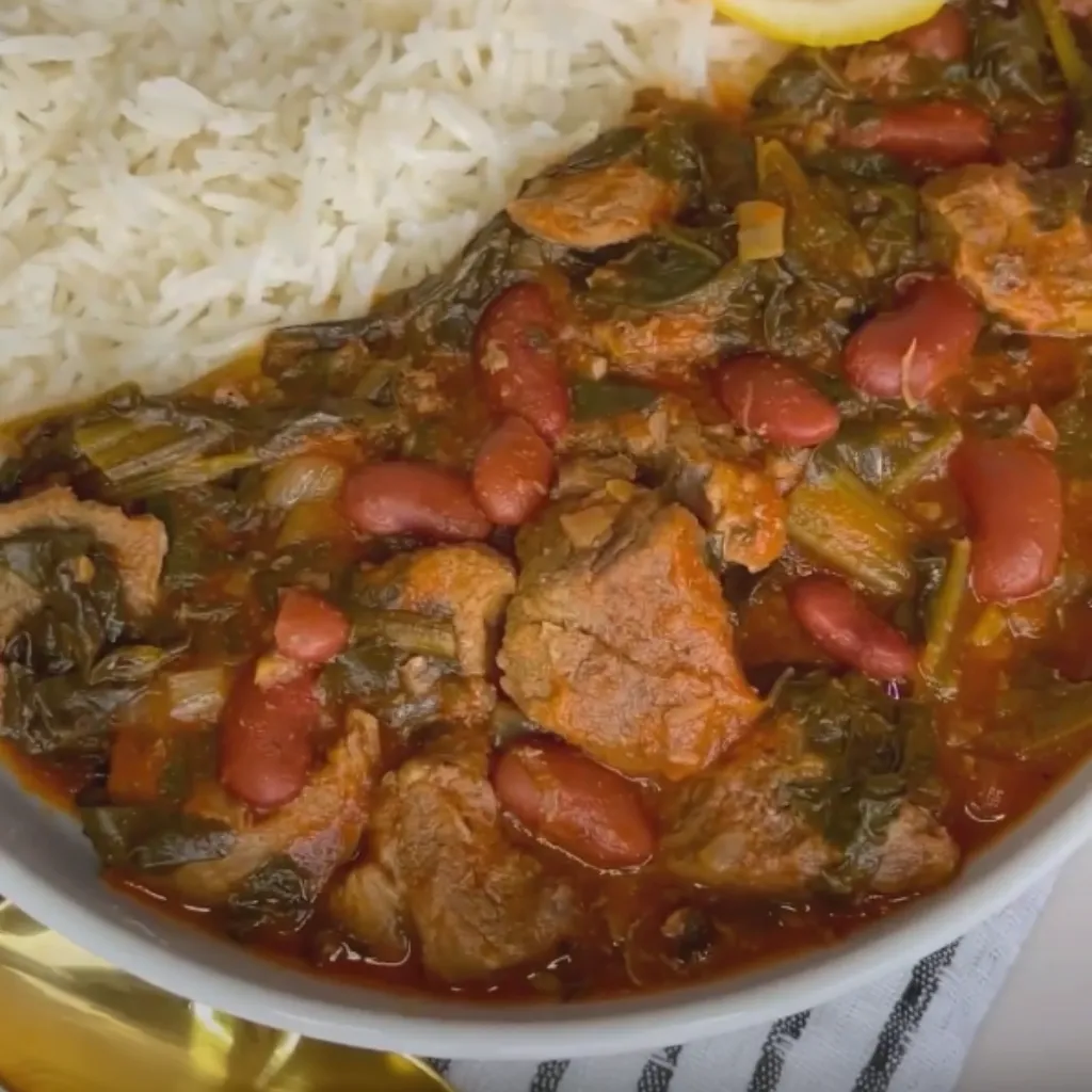 This comforting and hearty stew combines tender beef, nutritious spinach, and protein-packed red kidney beans to create a satisfying meal perfect for cozy evenings. Enhanced with a touch of pomegranate molasses, this dish offers a delightful blend of flavors that you can enjoy with a side of rice.