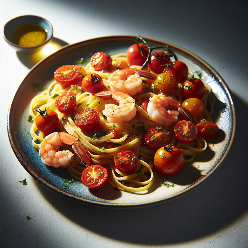 Shrimp and Burst Tomato Linguine