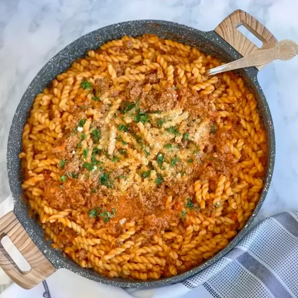 For a quick, comforting meal, look no further than this creamy, delicious pasta with a hearty meat sauce. Itโs a family favorite and incredibly easy to whip up on a busy evening. Savor the rich flavors of seasoned beef and creamy tomato sauce tossed with your favorite pasta, topped with fresh Parmesan and parsley for an extra touch of elegance.