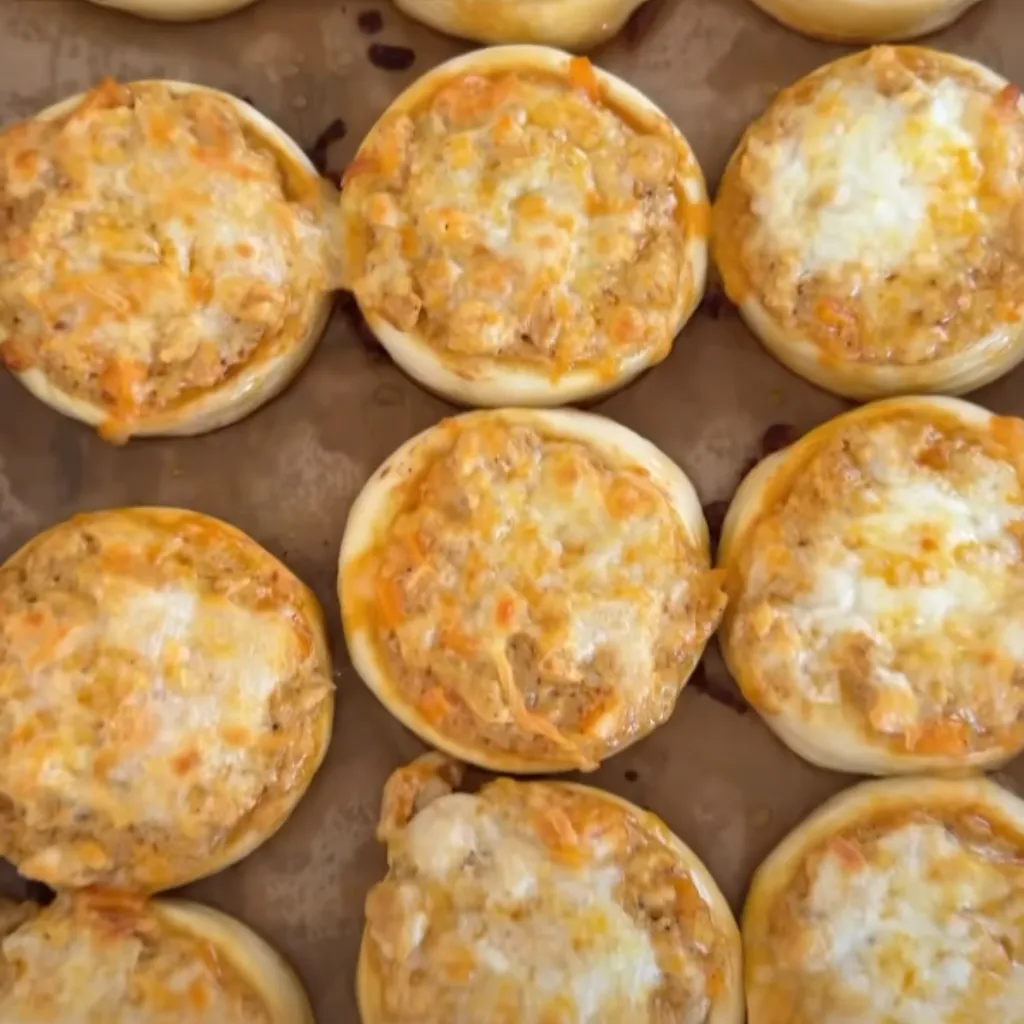 Creamy Cheesy Mini Chicken Alfredo Pizza Pies