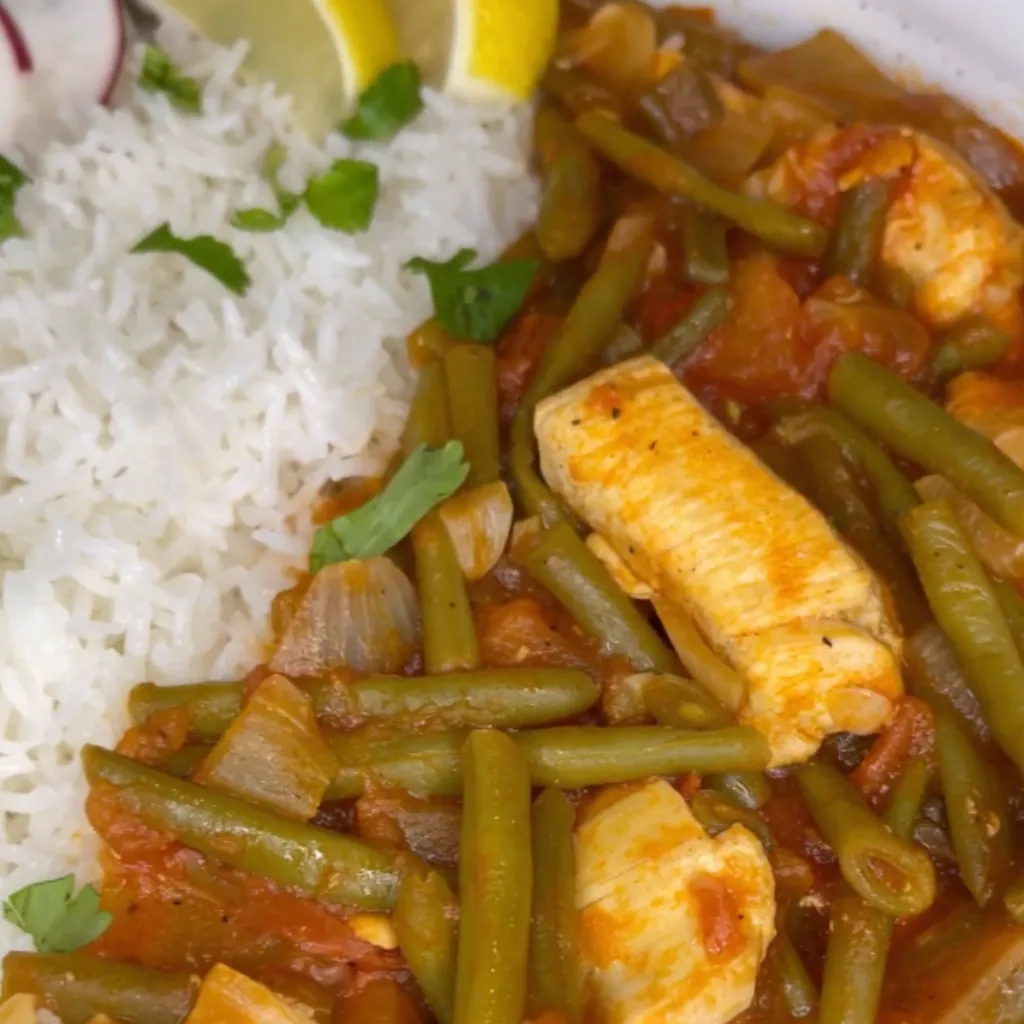 This Green Bean and Chicken Stew is a hearty and flavorful dish that perfectly blends tender chicken, fresh vegetables, and aromatic spices. It's an easy-to-make recipe that will surely become a favorite at your dining table. Enjoy this delicious stew by pairing it with fluffy white rice for a complete meal.