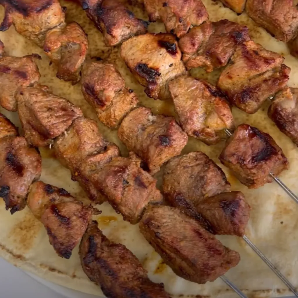 - Once done, remove the skewers from the grill.