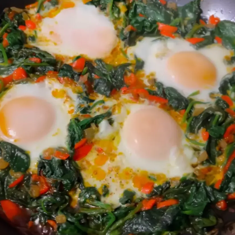 - Carefully serve the warm spinach and egg mixture onto plates.