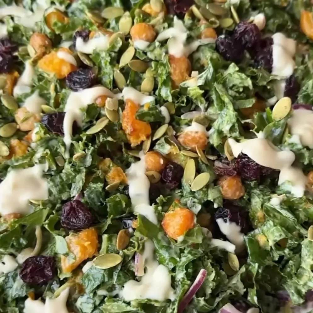 This vibrant and nourishing salad combines the earthiness of roasted butternut squash, the heartiness of chickpeas, and the freshness of kale. Complemented by a creamy tahini dressing, it's a perfect dish for autumn or any time you crave something wholesome yet flavorful.