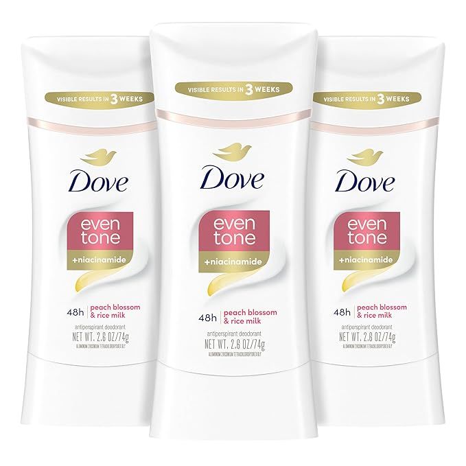 Dove Even Tone Antiperspirant Deodorant Stick Peach Blossom & Rice Milk 3 Count 2.6 oz