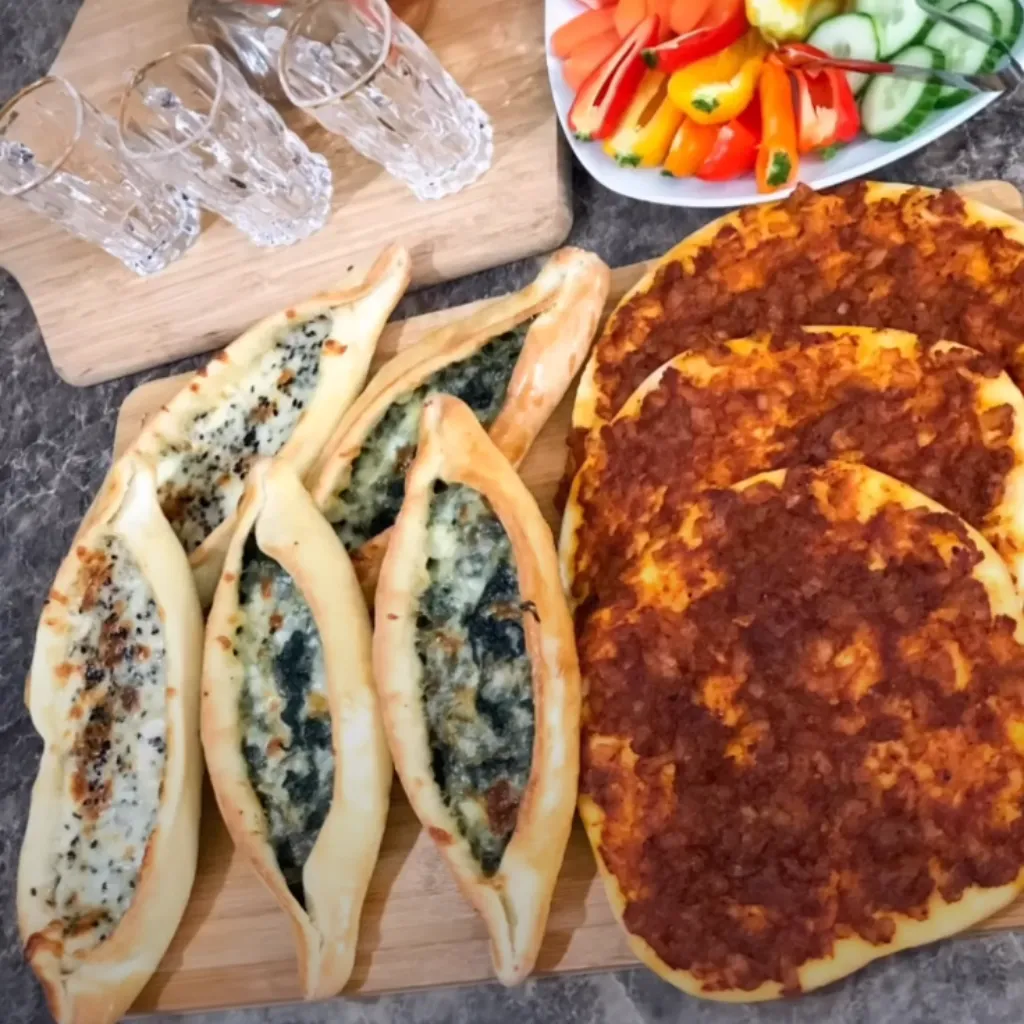 - For the Pide: Form a small circle, place spinach filling in the center, top with mozzarella, and fold sides over to form the classic pide shape.