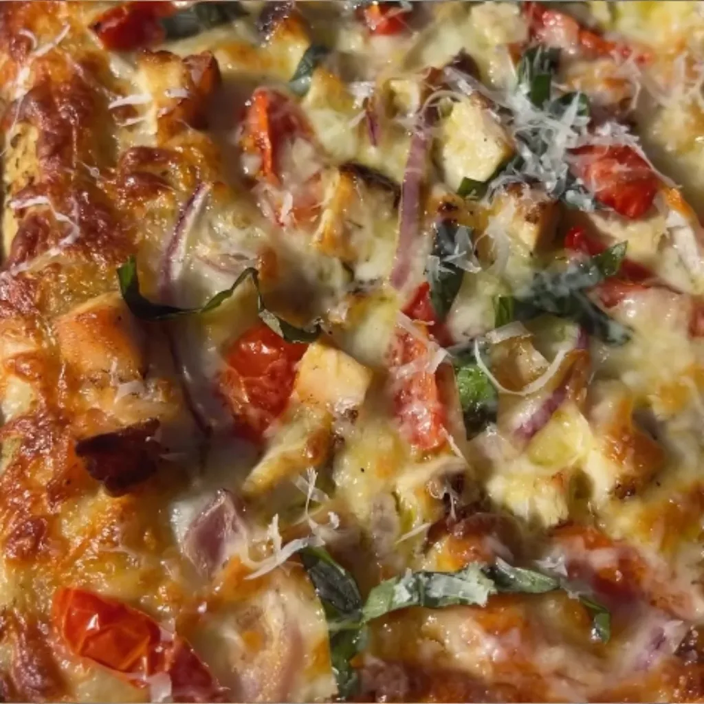 #pizza #sheetpan #pesto #chickenpizza #easyrecipe #familyfavorite #weeknightdinner #italianfood #homemadepizza #quickmeal