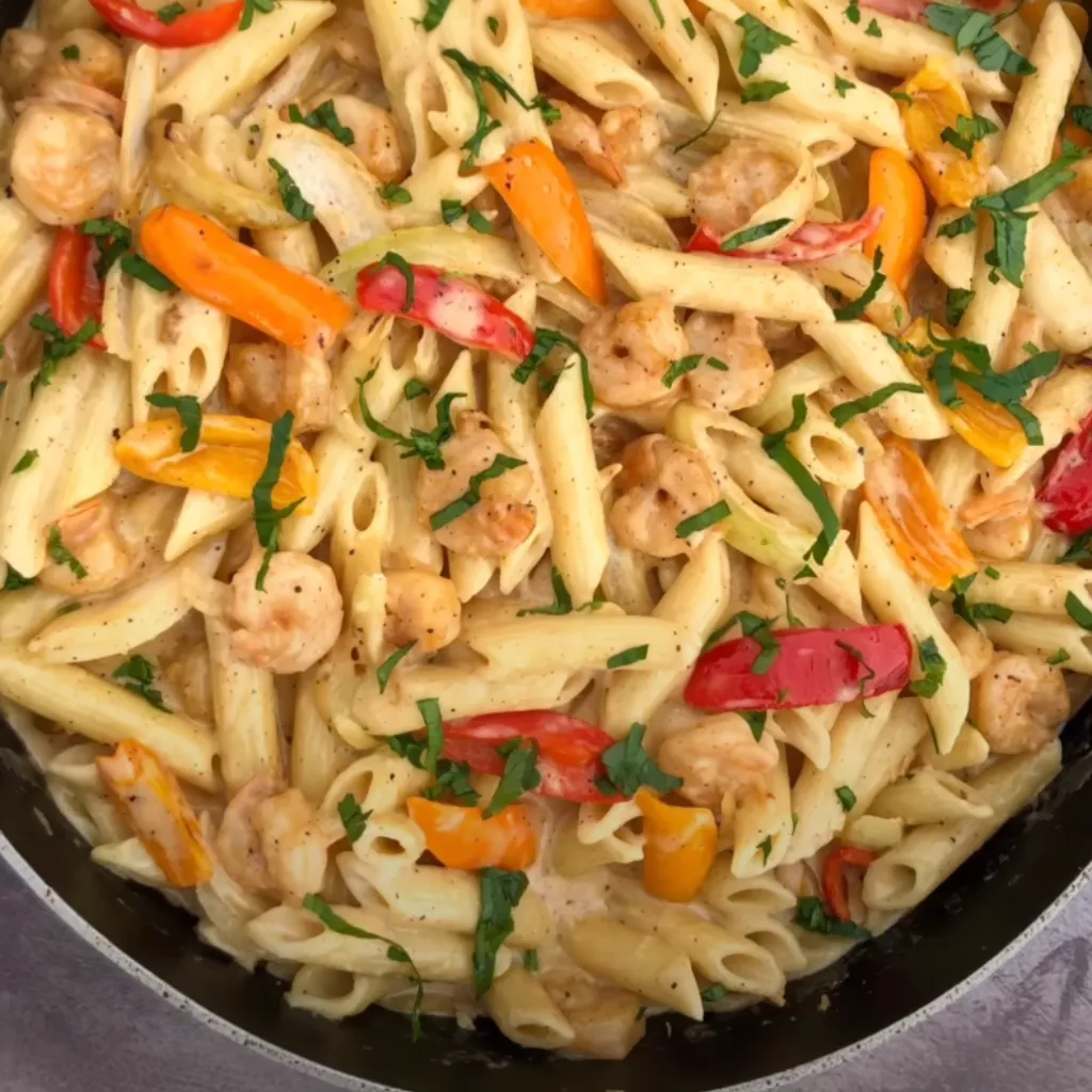 Indulge in this flavorful Cajun Shrimp Pasta, a delightful blend of succulent shrimp, vibrant bell peppers, and a creamy, cheesy sauce with a bold kick of Cajun seasoning. It's a comforting dish that's simple enough for a weeknight meal yet sophisticated for a special occasion.