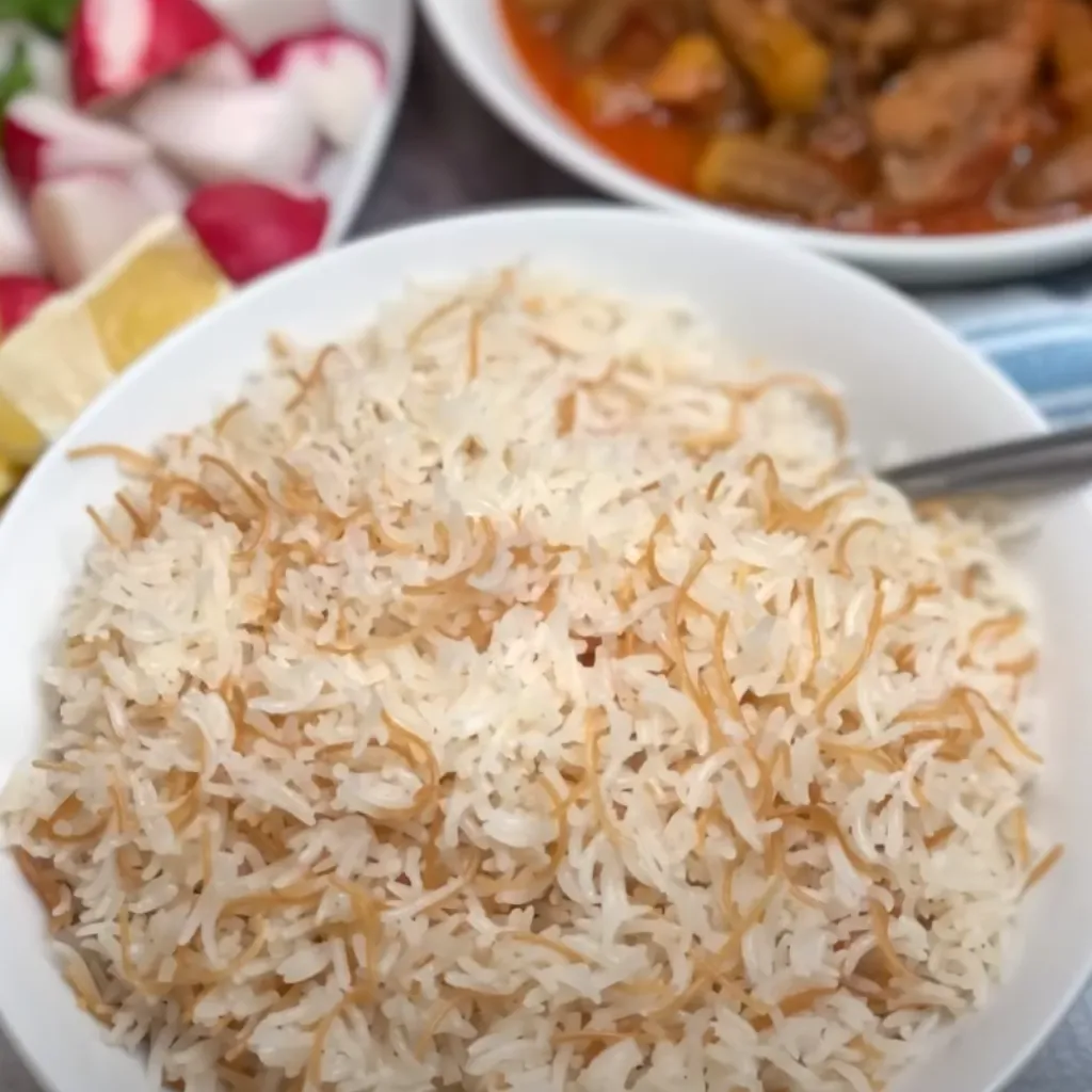 This delightful dish combines the aromatic basmati rice and crunchy golden vermicelli, offering a fragrant and textured side that pairs beautifully with a wide variety of main courses. It's a staple in many Middle Eastern and Mediterranean cuisines, perfect for any occasion.