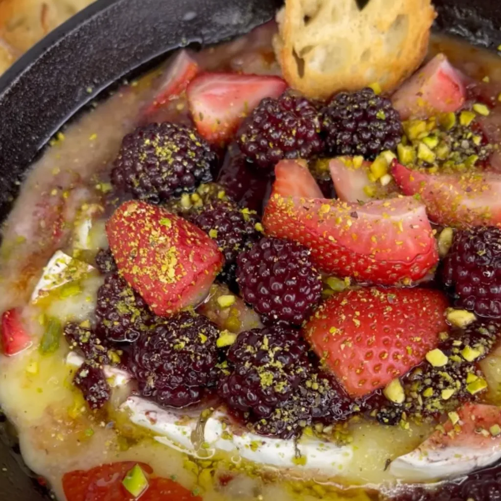 - Enjoy the warm, gooey Brie paired with the sweet and nutty toppings.