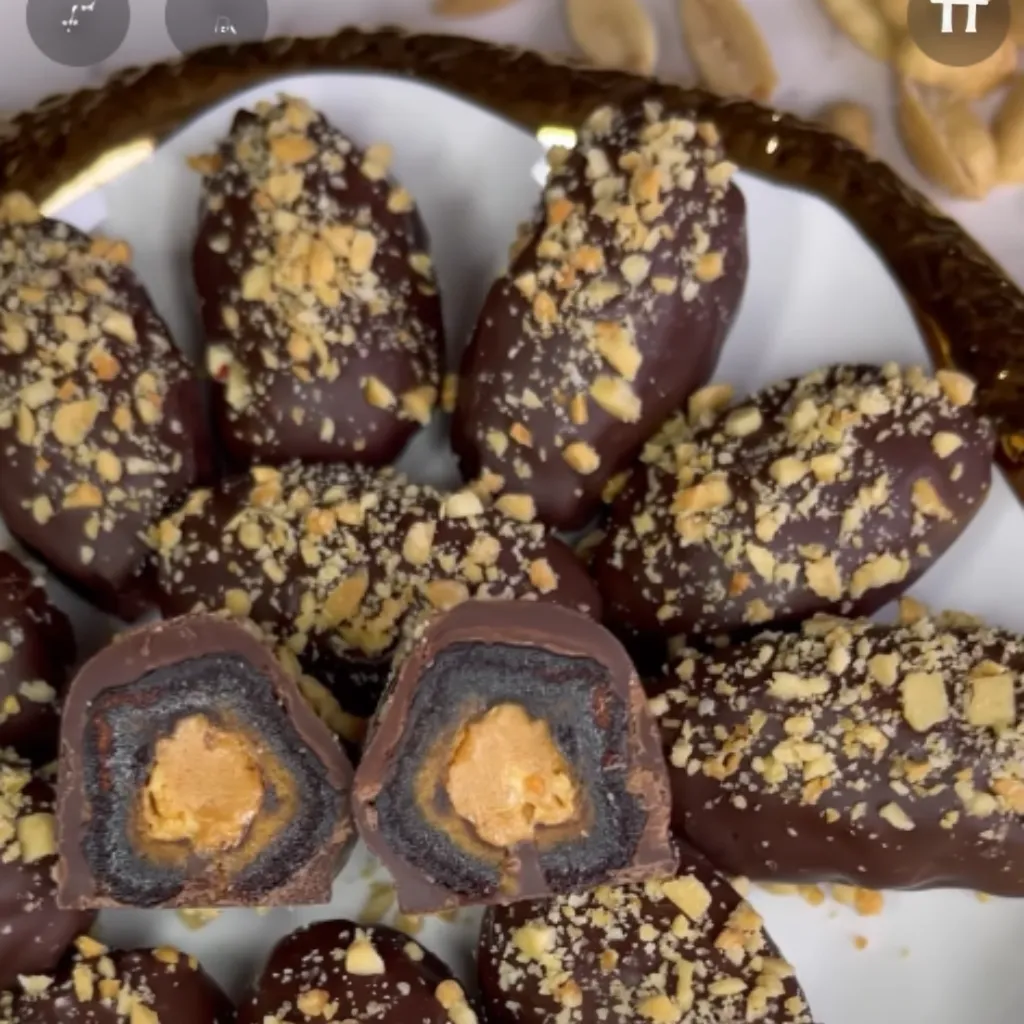 - Once melted, dip each peanut butter-stuffed date into the chocolate, ensuring it is fully coated.