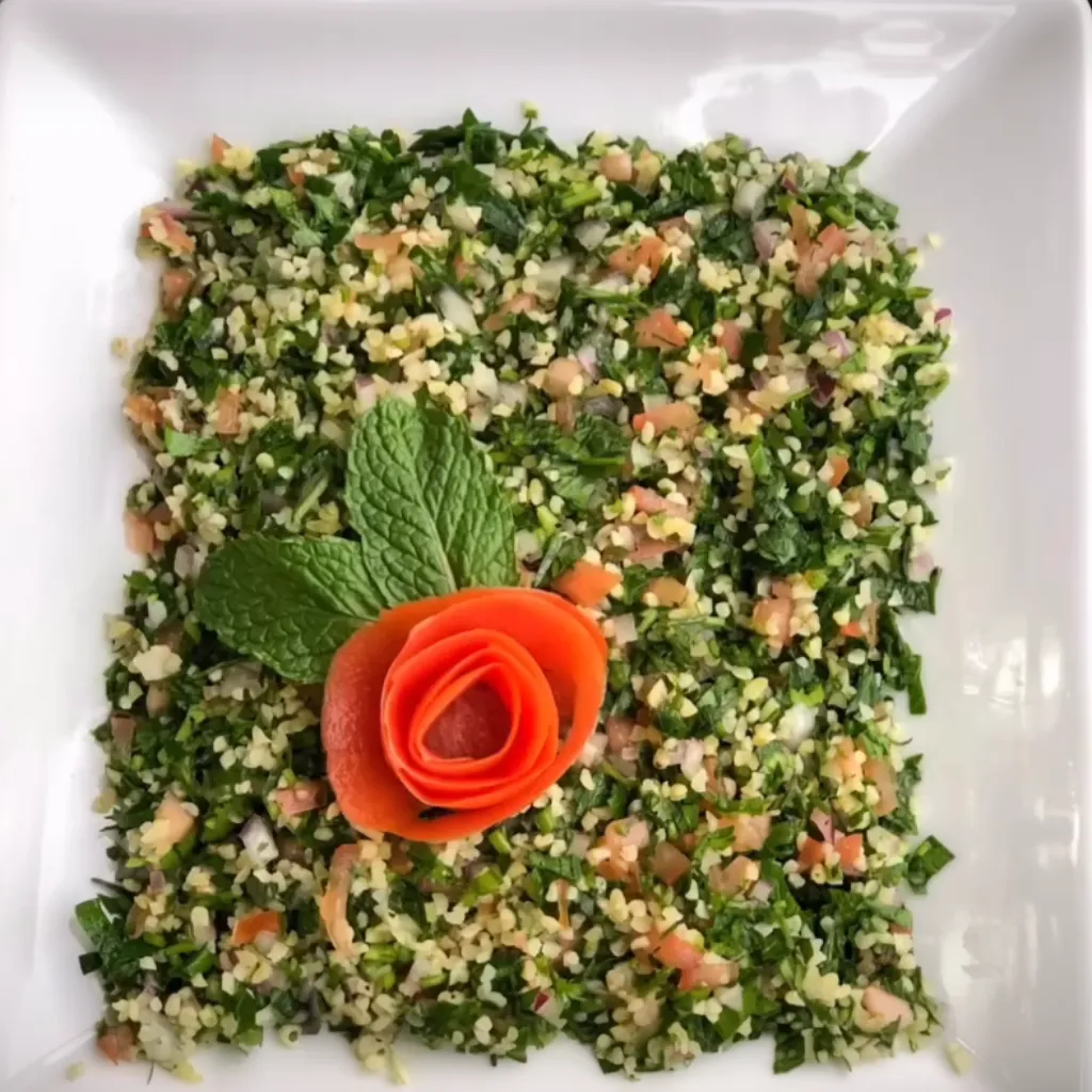 Experience a taste of the Middle East with this vibrant and refreshing Tabbouleh Salad. Made with fresh parsley, tomatoes, red onion, mint, and bulgur wheat infused with zesty lemon juice and rich olive oil, this salad is a perfect side dish or light lunch. Its simplicity and bold flavors make it a staple in Middle Eastern cuisine.